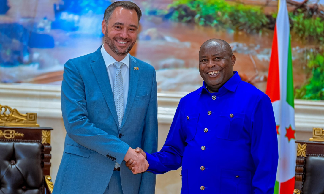 Photo : Le président burundais Évariste Ndayishimiye accueille Maxime Prévot, vice-Premier ministre et ministre des Affaires étrangères belge, lors de sa visite officielle à Bujumbura