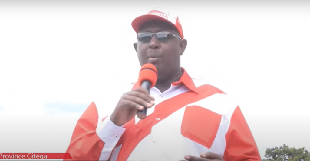 Photo : Isidore Mbayahaga s’exprimant lors d’un meeting pendant la campagne électorale de 2020 © GTG Web TV