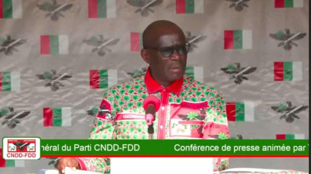 Photo : Révérien Ndikuriyo, Secrétaire général du CNDD-FDD, lors de la conférence de presse où il a admis l’existence d’une “liste de voleurs” au sein du parti. © DR