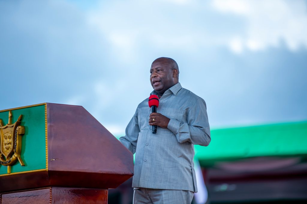 Photo : Le president Evariste Ndayishimiye sadressant aux gens venus assister au lancement de la campagne electorale