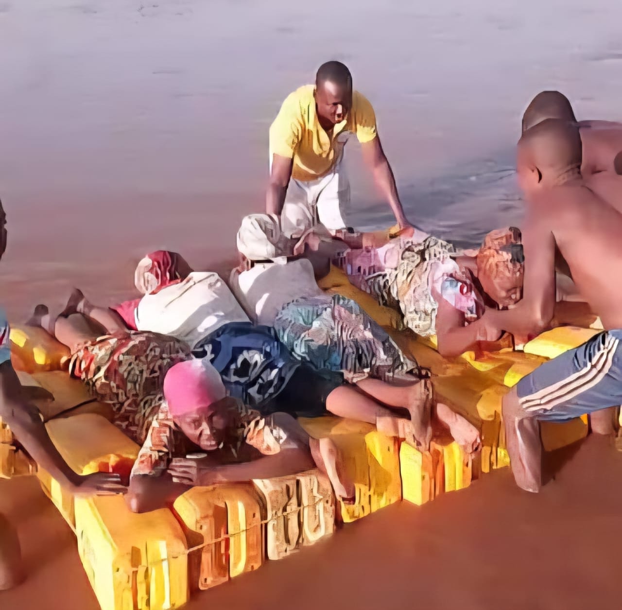 Photo : Des réfugiés congolais traversent la rivière Rusizi à l’aide de bidons vides pour regagner clandestinement la RDC depuis le Burundi, faute de voies de retour officielles. © SOS Médias Burundi
